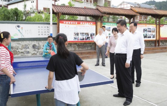 总书记来到贵州遵义的花茂村,在该村白泥组的党员群众之家门口,几个孩子在打乒乓球,总书记走上前去观看。得知孩子们是放学了在这里玩,他问大家学校远不远、放学怎么回家。孩子们说,只有一公里的路,走10多分钟就到家了,总书记听了微笑着点点头。