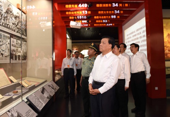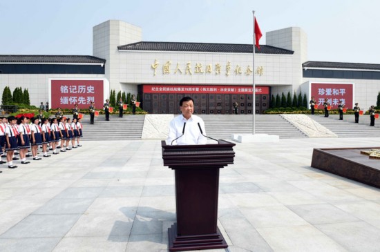 7月7日,纪念全民族抗战爆发七十八周年暨《伟大胜利历史贡献》主题展览开幕式在北京中国人民抗日战争纪念馆举行。中共中央政治局常委、中央书记处书记刘云山发表讲话并宣布展览开幕。 新华社记者 饶爱民 摄