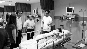 18日,中国驻泰国使馆人员看望受伤的中国游客。新华社发