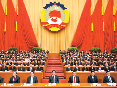 3月3日,中国人民政治协商会议第十二届全国委员会第四次会议在北京人民大会堂开幕。这是俞正声代表政协第十二届全国委员会常务委员会作工作报告。 记者 雷声摄 |