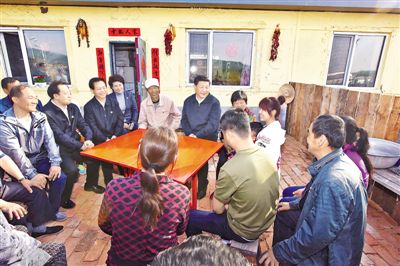 5月23日至25日,中共中央总书记、国家主席、中央军委主席习近平在黑龙江考察调研。这是5月23日下午,习近平在伊春上甘岭林业局溪水经营所林场职工刘养顺(左五)家,同一家人及其邻居们亲切交谈。 新华社记者