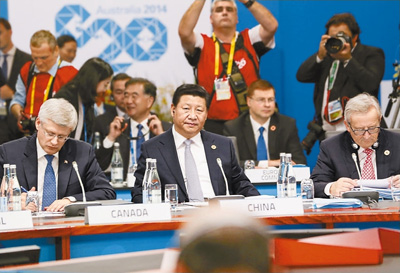 2014年11月15日,二十国集团领导人第九次峰会在澳大利亚布里斯班举行。国家主席习近平出席会议并发表题为《推动创新发展 实现联动增长》的重要讲话。