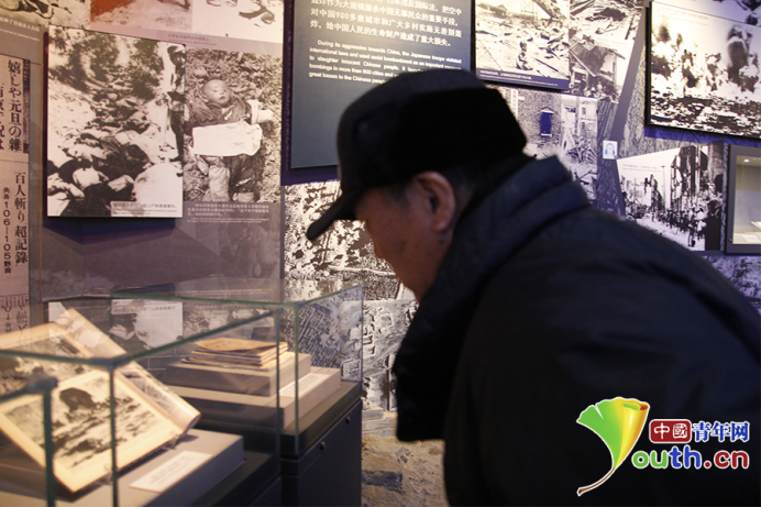 中国青年网北京12月13日电(记者 卢冠琼 李程光)“我出生于1945年8月15日,那天正好是日本人投降的日子。”在中国人民抗日战争纪念馆里,70多岁的朱大爷叹息着告诉中国青年网记者,“胜利的喜悦抹不掉日本法西斯给咱们中国人民带来的伤害。今天去不了南京,我就和几个老朋友一起上抗战馆来。历史教训不能忘,血性不能丢,今天看到这么多学生来这里,我们这些老头就放心了……”