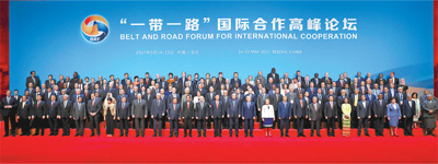 5月14日,国家主席习近平在北京出席“一带一路”国际合作高峰论坛开幕式,并发表题为《携手推进“一带一路”建设》的主旨演讲。这是习近平同出席“一带一路”国际合作高峰论坛的代表们合影。 新华社记者 庞兴雷摄 |