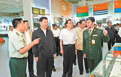 7月21日,党和国家领导人习近平、李克强、张德江、俞正声、刘云山、王岐山、张高丽等在中国人民革命军事博物馆参观“铭记光辉历史 开创强军伟业——庆祝中国人民解放军建军90周年主题展览”。 新华社记者 马占成摄 |