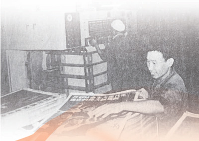 北京一家印刷厂的工人们印制庆祝十二大召开的宣传画。 资料照片 |