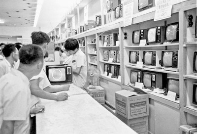 1982年,北京市场售卖电视机。 资料照片 |
