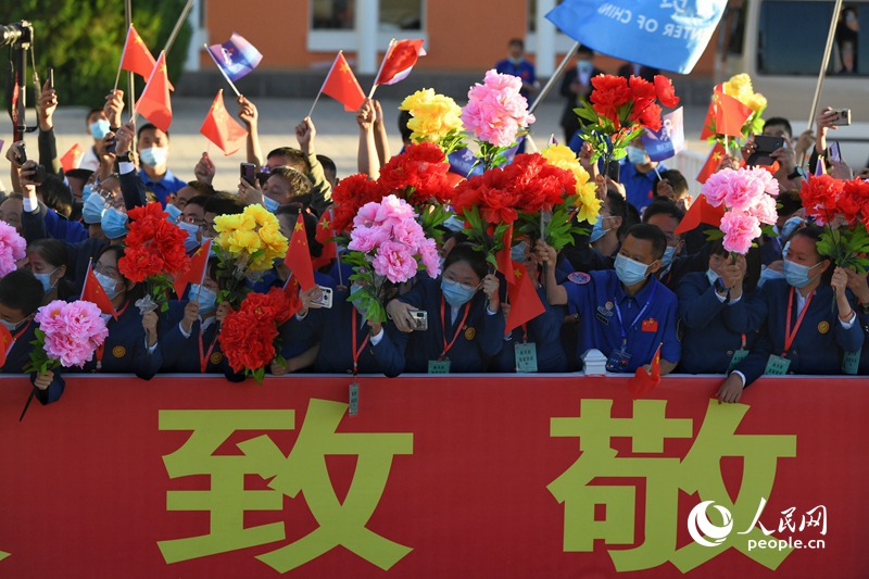 6月17日,神舟十二号载人飞行任务航天员乘组出征仪式在酒泉卫星发射中心举行。人民网记者 翁奇羽摄