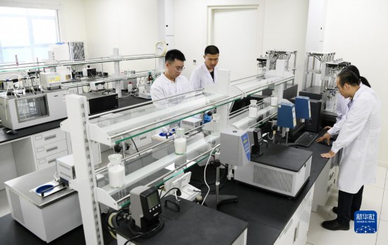 在大庆油田勘探开发研究院,科研人员在进行聚合物驱油实验(2019年6月26日摄)。新华社记者 王建威 摄